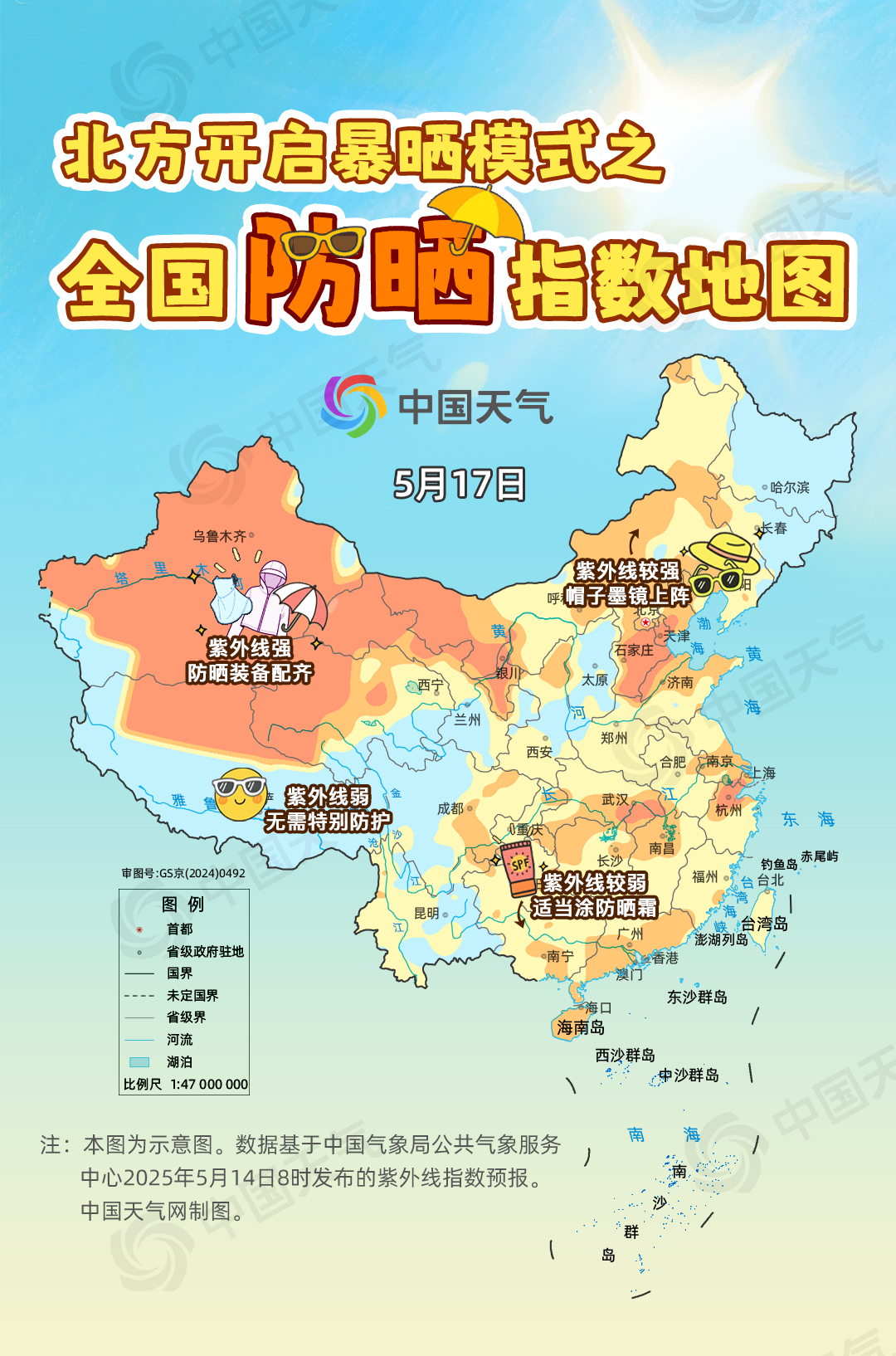 收下这份全国防晒指数地图,看看你的城市需要几级防晒装备。
